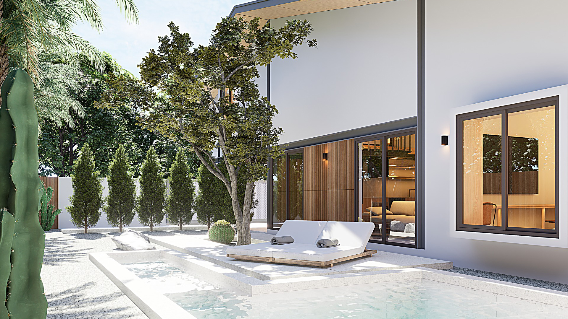 This collection of four Pool Villas brings together the rustic charm of Barn Style with the clean lines of Modern architecture. The result is a home that feels warm and natural, yet contemporary and practical.